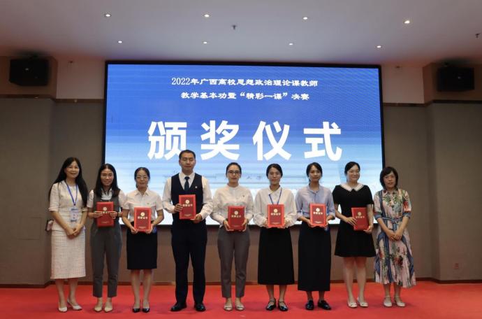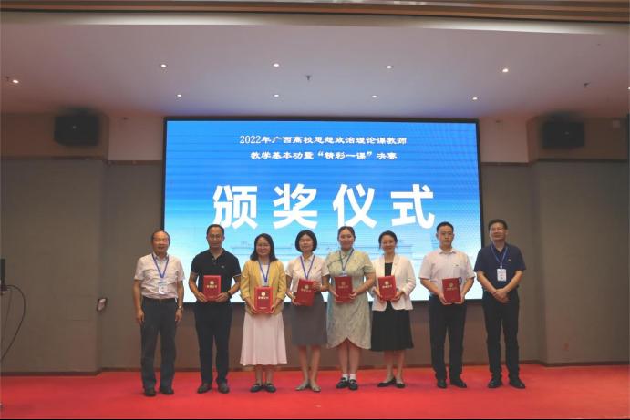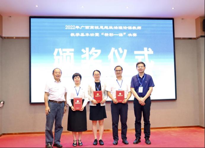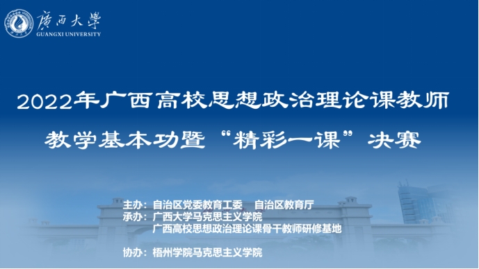 在党的二十大即将召开之际,9月24日,由自治区党委教育工委、自治区教育厅主办,太阳成集团122ccvip、广西高校思想政治理论课骨干教师研修基地(太阳成集团tyc122cc)承办,梧州学院太阳成集团122ccvip协办的2022年广西高校思想政治理论课教师教学基本功暨“精彩一课”决赛在南宁顺利举行。本次比赛通过“以赛促教、以赛促学、以赛促升”的方式,深入挖掘和探讨教学中的重点难点问题,着力提高中青年思政骨干教师的专业素质,不断增强他们把道理讲深讲透讲活的能力,进一步提升思政课的历史厚度、理论深度、视野广度、情感温度和价值高度,让思政课在释放“真理的味道”的同时增强生动性和亲和力,成为 “有意思”“有营养”的思想盛宴。