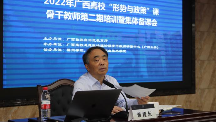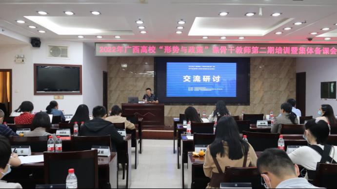 为全面贯彻党的教育方针,进一步加强我区高校“形势与政策”课教师队伍建设,落实立德树人根本任务,由自治区教育厅主办,广西高校思想政治理论课骨干教师研修基地(太阳成集团tyc122cc)承办,梧州学院和广西机电职业技术学院协办的2022年广西高校“形势与政策”课骨干教师第二期培训暨集体备课会于11月1日—3日在北海举办。