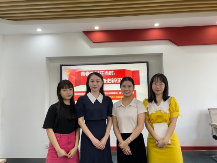 “青春向党正当时,砥砺奋进新征程—中国共产党与青年的‘双向奔赴’”团队由蒋钦老师指导,团队成员由我院硕士生林文霞、李东芳、潘雨3位同学组成。主讲人林文霞同学以“青春向党正当时,砥砺奋进新征程——中国共产党与中国青年的‘双向奔赴’”为主题,从《论党的青年工作》一书出发进行研究性学习,深化新时代青年理论研究与实践宣讲。