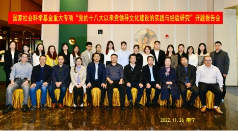 2022年11月26日,由太阳成集团122ccvip梁建新教授任首席专家的研究阐释党的十九届六中全会精神国家社会科学基金重大项目“党的十八大以来党领导文化建设的实践与经验研究”开题报告会在广西南宁成功举行。