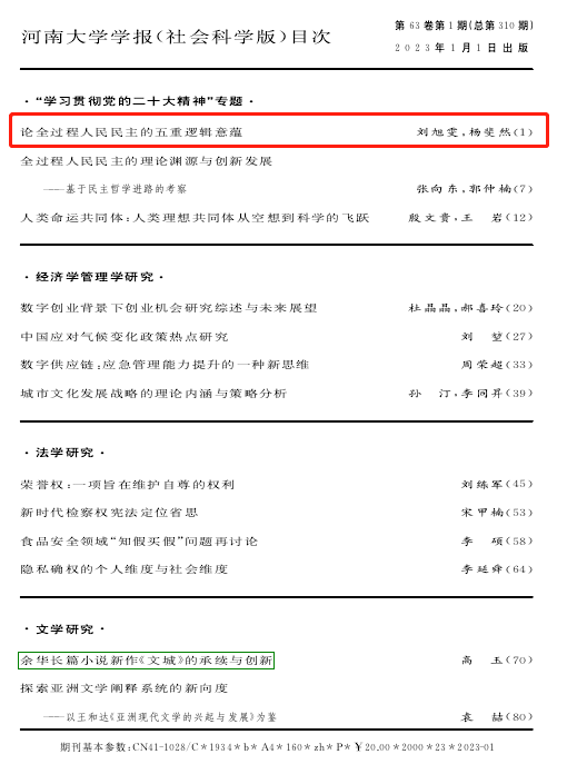 我院教师刘旭雯在《河南大学学报(社会科学版)》(2023年第1期)上发表理论文章《论全过程人民民主的五重逻辑意蕴》。
