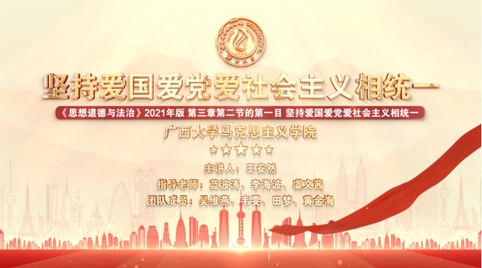 我院选送的作品《坚持爱党爱国爱社会主义相统一》荣获本科组二等奖,这是我校在第六届全国大学生讲思政课比赛中获得的最好成绩,同时也是近三年我院在这类比赛中取得的最好成绩。该作品由蓝波涛、李海波、虞文茜指导,王安然主讲,团队成员为吴维燕、韦雯、田梦、黄金海。