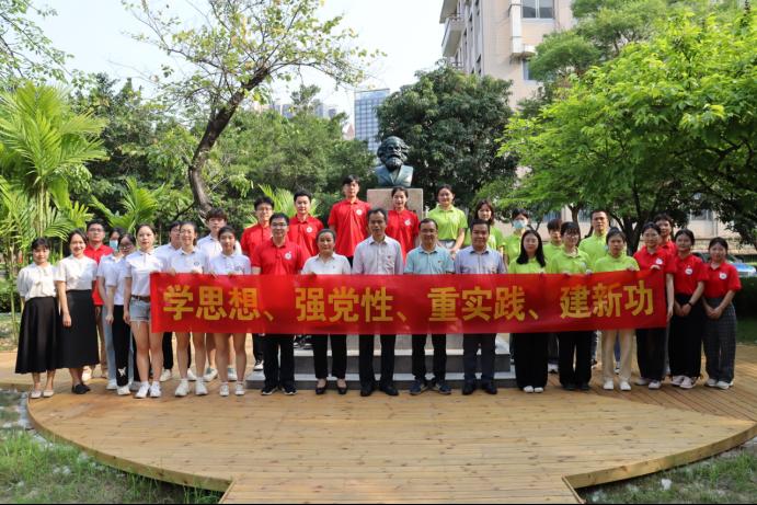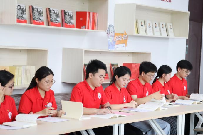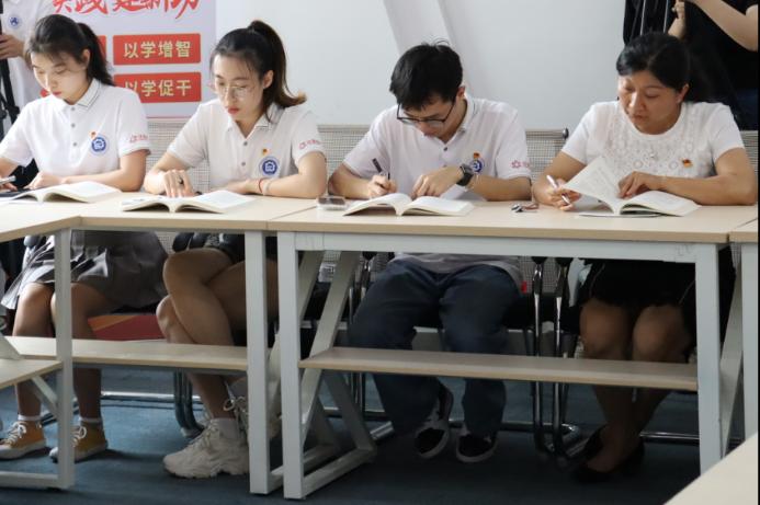 与会师生参观了“与马克思一起读书”文化广场,了解广场的基本情况及我院青年在此举办的系列特色读书活动。在习近平书屋,各位老师和同学们共同研读《论党的青年工作》,齐读书中篇目《用美好青春诠释初心和使命,谱写新时代青春之歌》,朗朗书声萦绕书屋,句句铿锵有力,展示了团员青年们用实际行动建功新时代的决心和信心。