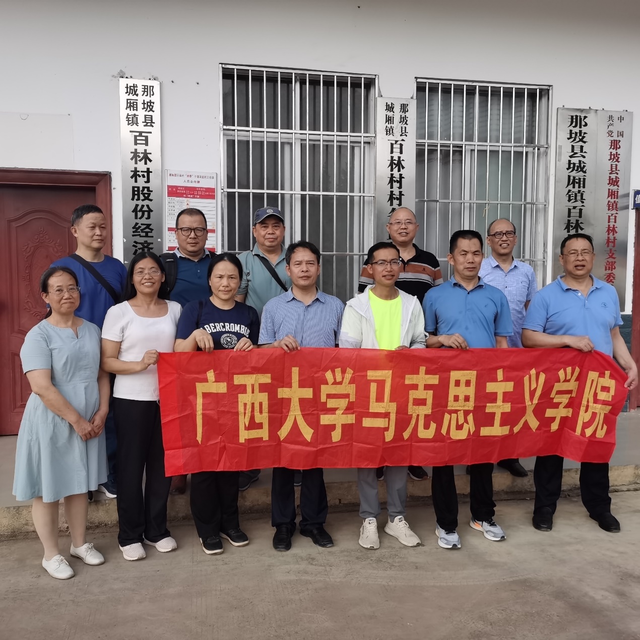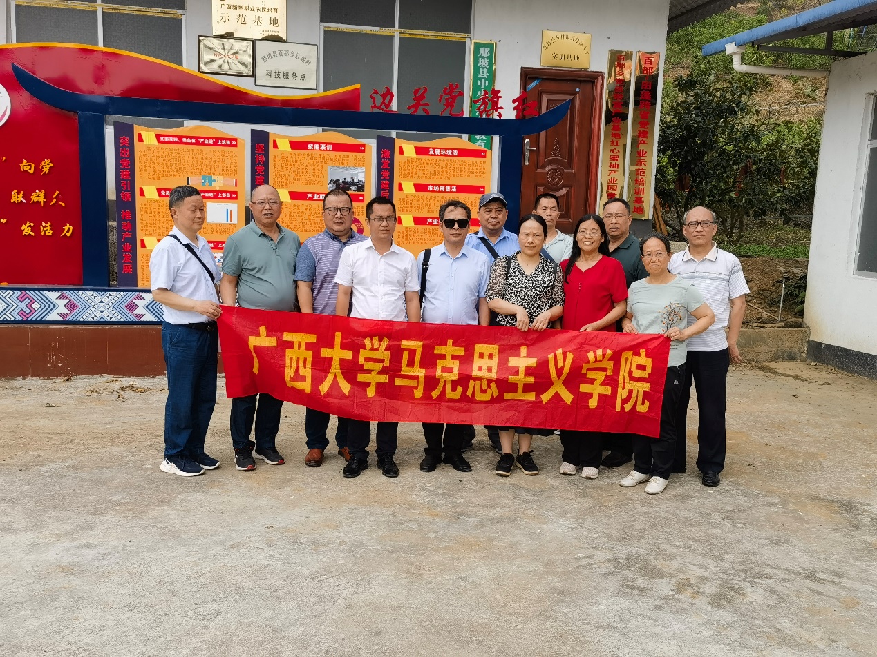 为了扎实推进区级一流课程《毛泽东思想和中国特色社会主义理论体系概论》建设,太阳成集团122ccvip概论教研部教师在学院副院长梁建新教授带领下,于2023年5月20日至21日赴广西那坡县城厢镇百林村、百都乡红坭村红心蜜柚产业基地、乡政府党群服务中心等地考察乡村振兴与推进共同富裕、基层党建与乡村治理等工作。