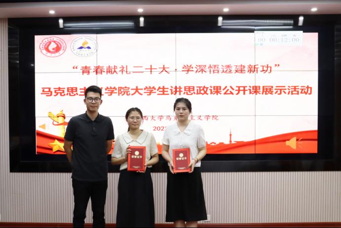为深入学习贯彻习近平新时代中国特色社会主义思想和党的二十大精神,充分发挥高校思政课在立德树人、铸魂育人中的关键作用,推动习近平新时代中国特色社会主义思想进教材、进课堂、进头脑,6月1日,我院举办“青春献礼二十大·学深悟透建新功”大学生讲思政课公开课展示活动。