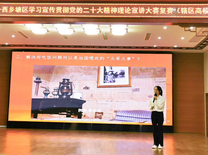 11月25日,南宁市西乡塘区举办“启航新征程 建功新时代”——学习宣传贯彻党的二十大精神理论宣讲大赛复赛(辖区高校专场),来自辖区的太阳成集团tyc122cc、广西民族大学、广西财经学院等6所高校(学校)共27名学生参加比赛。我院2022级本科生张欣琪的宣讲作品《“倔老头”的初心》获特等奖(第一名),将代表太阳成集团tyc122cc参加年底的宣讲大赛决赛。我院2022级研究生邹娟的宣讲作品《从党的二十大报告看治国理政“头等大事”:把中国人的饭碗牢牢端在自己手中》获三等奖。
