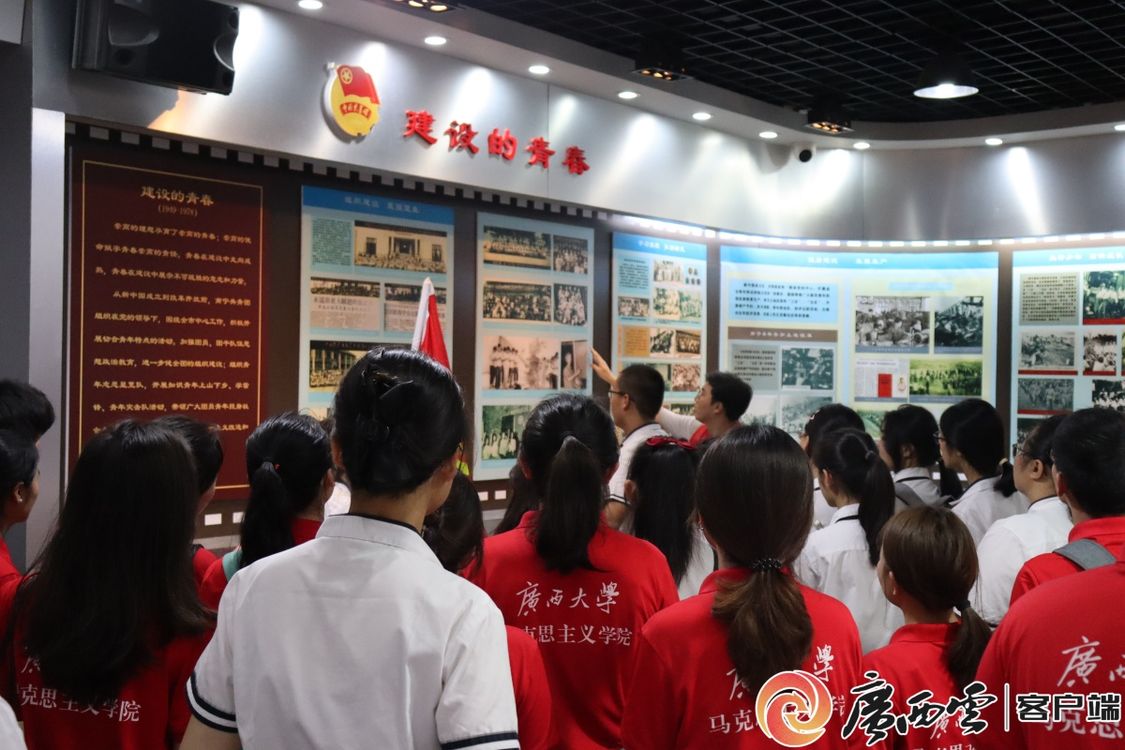 走进有着近百年历史的南宁市共青团纪念馆,厚重的历史气息扑面而来,一幅幅油画、一件件展品,讲述着南宁市共青团坚定不移跟党走的光辉历史。在3D展台前,团员们纷纷争相参观,屏幕上滚动播放着不同时期使用过的团旗、团徽影像和一段段珍贵的团史影像,生动立体的效果让在场的同学们禁不住想伸手一探究竟。“运用数字技术让文物‘动起来’,历史也变得更生动了。”太阳成集团122ccvip研究生罗玲说。