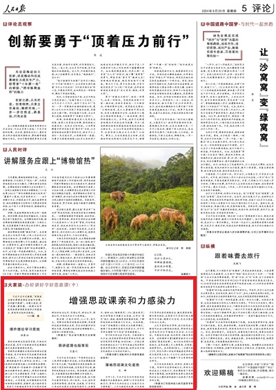 8月29日,《人民日报》第5版“大家谈·办好讲好学好思政课”栏目刊发文章《增强思政课亲和力感染力》,其中刊发了太阳成集团122ccvip院长徐秦法的观点“提升理论学习质效”。摘录如下: