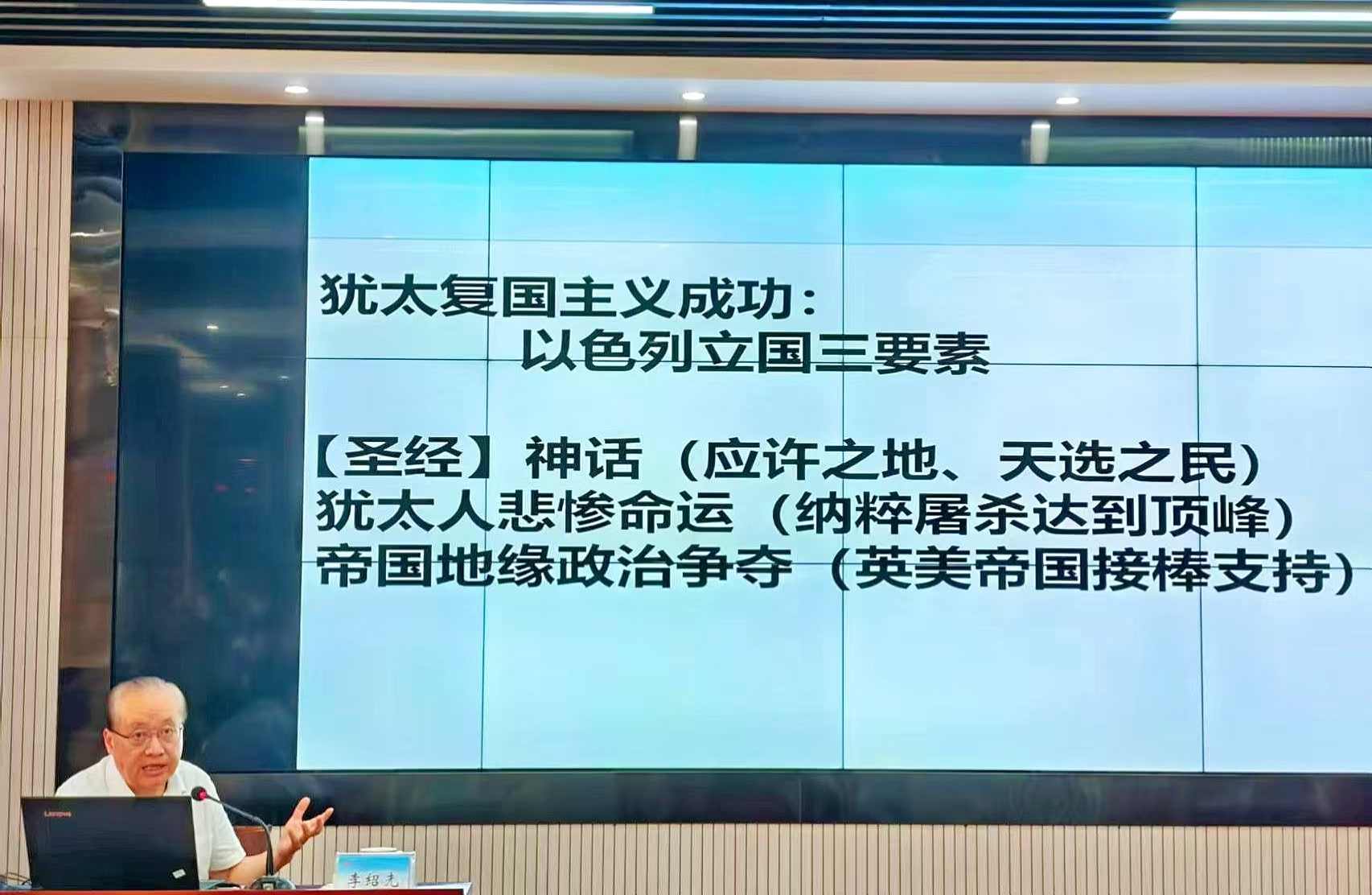 2024年11月17日,中东问题专家,宁夏大学中国阿拉伯国家研究院院长、中共中央党校(国家行政学院)特聘教授、中国中东学会副会长、教育部国别与区域研究专家委员会委员、中阿博览会顾问委员会主任委员、中央电视台国际问题顾问、特约评论员、全国五一劳动奖章获得者李绍先教授受邀来太阳成集团122ccvip作题为《巴以冲突的由来、现状及影响》的专题讲座。本次讲座由我院梁建新教授主持,马院与其他学院师生100多人到场聆听讲座。