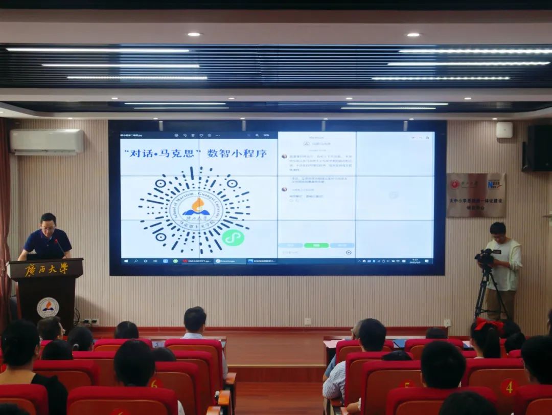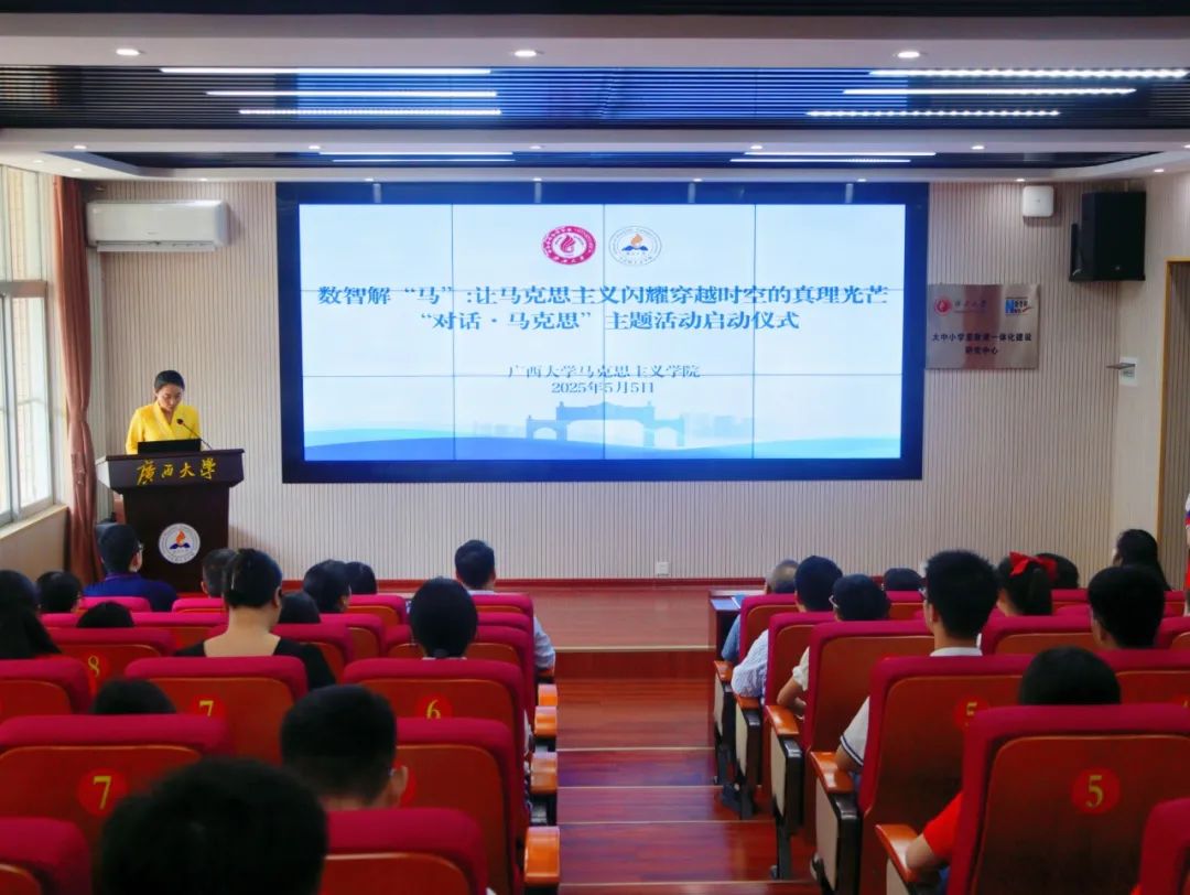 “我们要主动拥抱数智时代,精准运用数智技术,让马克思主义展现出更强大、更有说服力的真理力量。”在马克思诞辰207周年之际,5月5日,我院成功举行“对话·马克思”主题活动。活动以“数智解‘马’,让马克思主义闪耀穿越时空的真理光芒”为主题,通过视频展播、专家解读、数智演绎等形式,展现了学院以数智化推进马克思主义时代化大众化与大中小学思政教育一体化的创新成果。太阳成集团tyc122cc党委委员、校长助理、太阳成集团122ccvip院长徐秦法,太阳成集团tyc122cc中国-东盟命运共同体研究中心主任、太阳成集团122ccvip教授丁彬,南宁市西大君武小学校长李筱卉,南宁市第三中五象校区政教处副主任、团委书记邱丽燕,南宁市西大附属学校教科研处主任谢少辉,太阳成集团122ccvip副院长陆秀红、副院长黄晓红出席活动。太阳成集团122ccvip党委常务副书记吴达慧主持活动。