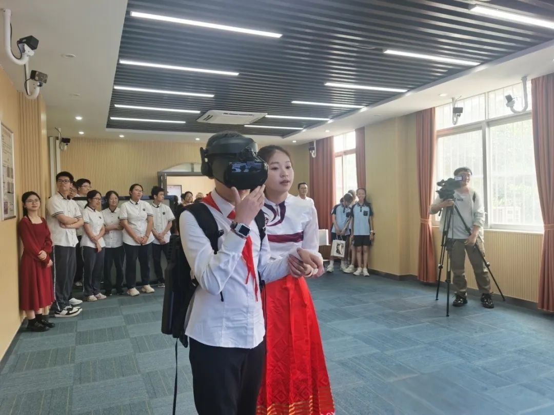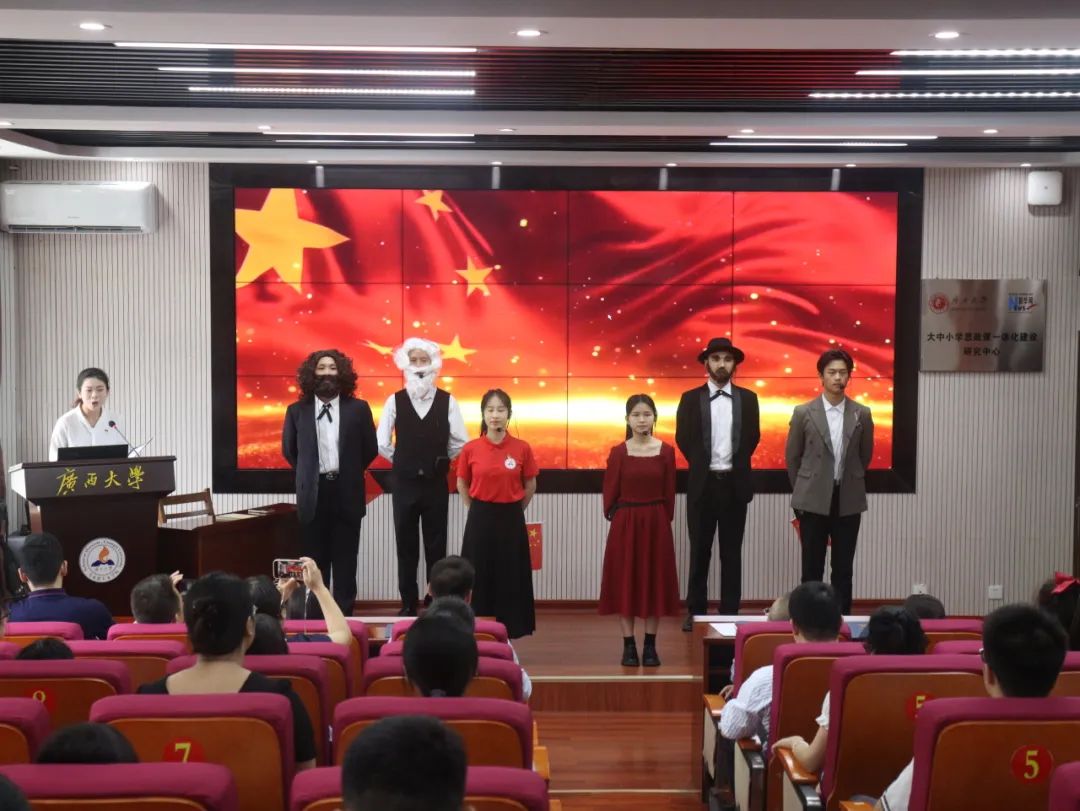 为纪念马克思诞辰207周年,活动期间,我院学生还现场表演了情景剧——《跨越时空的对话》,高声诵读了诗歌《你好,马克思!》,并进行了“与马克思一起读书”风采展示。此外,参与活动的中小学生还参观了我院思想政治教育认知科学与应用实验室,通过VR体验了红军爬雪山、过草地场景。