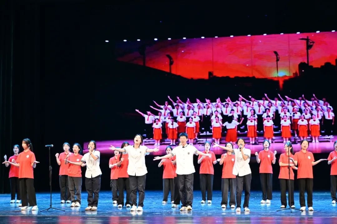 在第一篇章“志同道合行致远”中,由西大君武小学师生及家长代表表演的《戏韵芳华》演绎了中华优秀传统文化的悠扬婉转;一曲《山歌好比春江水》以民歌为纽带,传递出浓郁的壮乡风情;随后,由西大附属学校学生代表朗诵的《我是一颗甜甜的石榴籽》深情诠释了“籽籽相抱”“命运与共”的温暖故事。