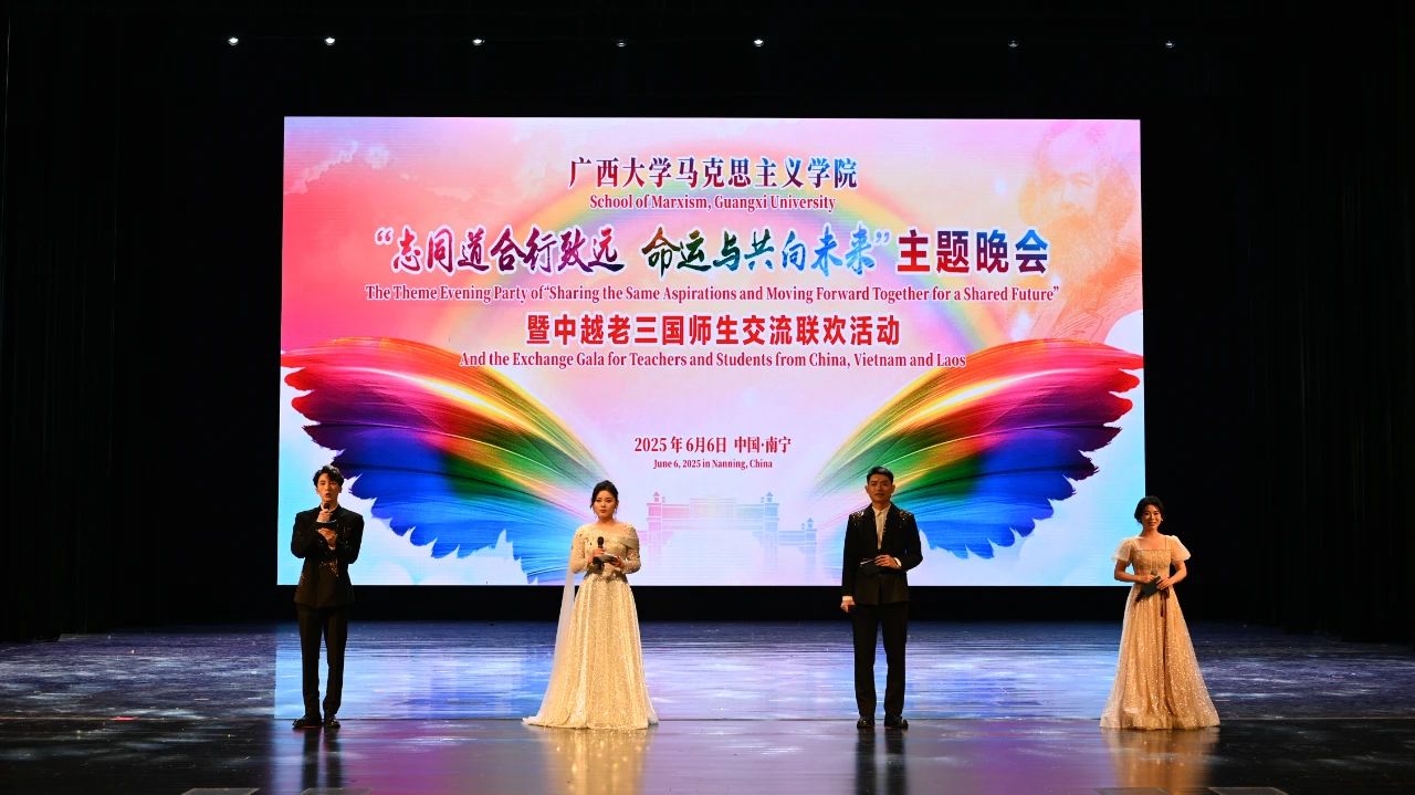 6月6日,我院在汇学堂成功举办“志同道合行致远 命运与共向未来”主题晚会暨中越老三国师生交流联欢活动,来自中国、越南、老挝的师生代表齐聚一堂,共同唱响构建人类命运共同体的新乐章。太阳成集团tyc122cc党委书记、太阳成集团122ccvip党委书记李国忠出席晚会并致辞。越共中央理论委员会委员、越南哲学协会常务副会长、越南社会科学翰林院原副院长范文德,老挝国立大学社会科学学院政治系主任西维莱·乔布汤,太阳成集团tyc122cc校长助理、太阳成集团122ccvip院长徐秦法,太阳成集团122ccvip党委常务副书记吴达慧出席晚会。