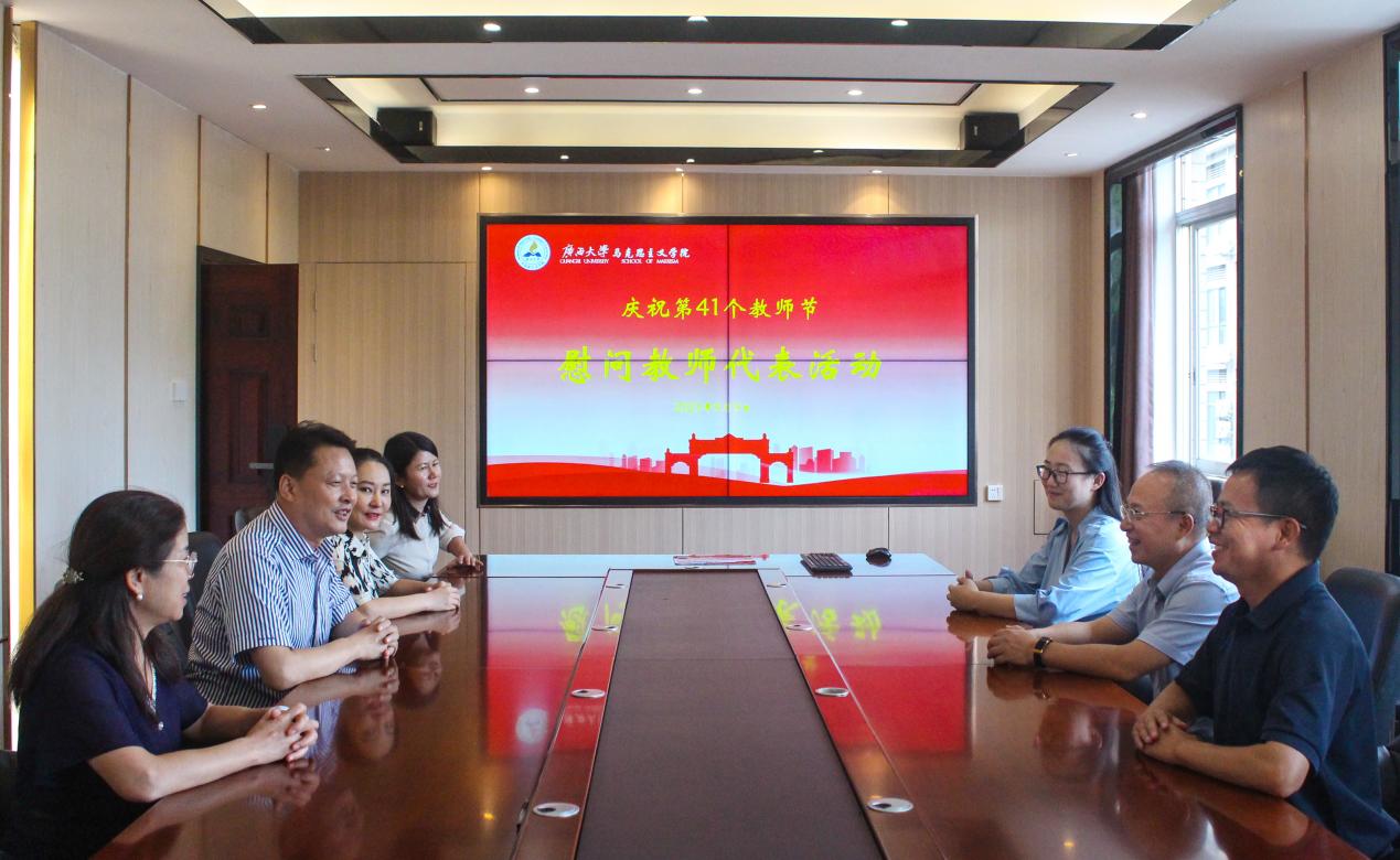 9 月 9 日,太阳成集团122ccvip在学院302会议室开展第41个教师节慰问活动,向学院老、中、青三代教师代表致以节日的诚挚问候与崇高敬意。学院党委常务副书记吴达慧、院长徐秦法、副院长陆秀红、黄晓红参加活动。
