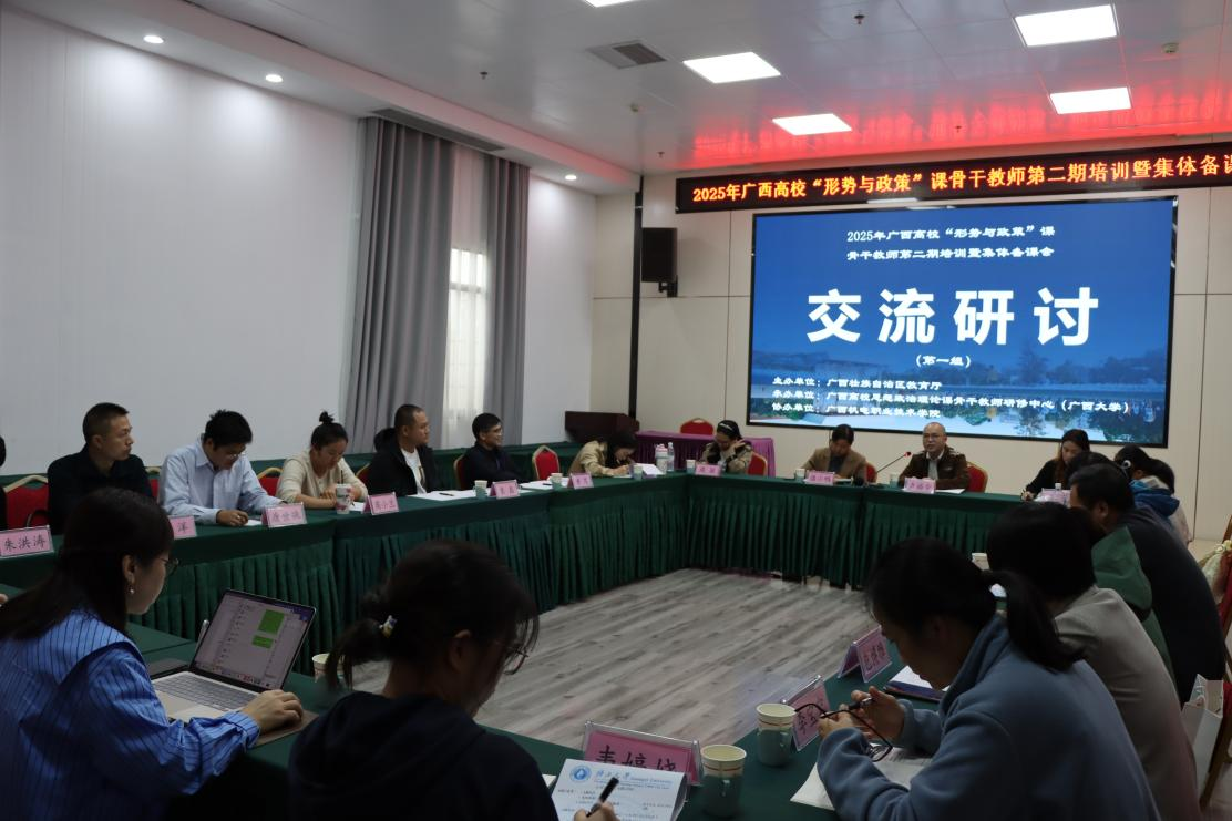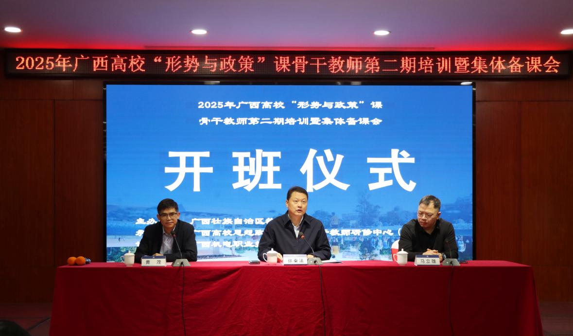 为深入贯彻党的二十大和二十届二中、三中、四中全会精神,持续推进广西高校 “形势与政策” 课程教师队伍专业化建设,全面提升课程的时效性、针对性与前沿性,2025年10月31日至11月3日,由广西壮族自治区教育厅主办、广西高校思想政治理论课骨干教师研修基地(太阳成集团tyc122cc)承办、广西机电职业技术学院协办的 2025 年广西高校 “形势与政策” 课骨干教师第二期培训暨集体备课会在柳州成功召开。我院院长徐秦法教授出席开班仪式并致辞,仪式由广西财经学院太阳成集团122ccvip副院长黄茂主持。