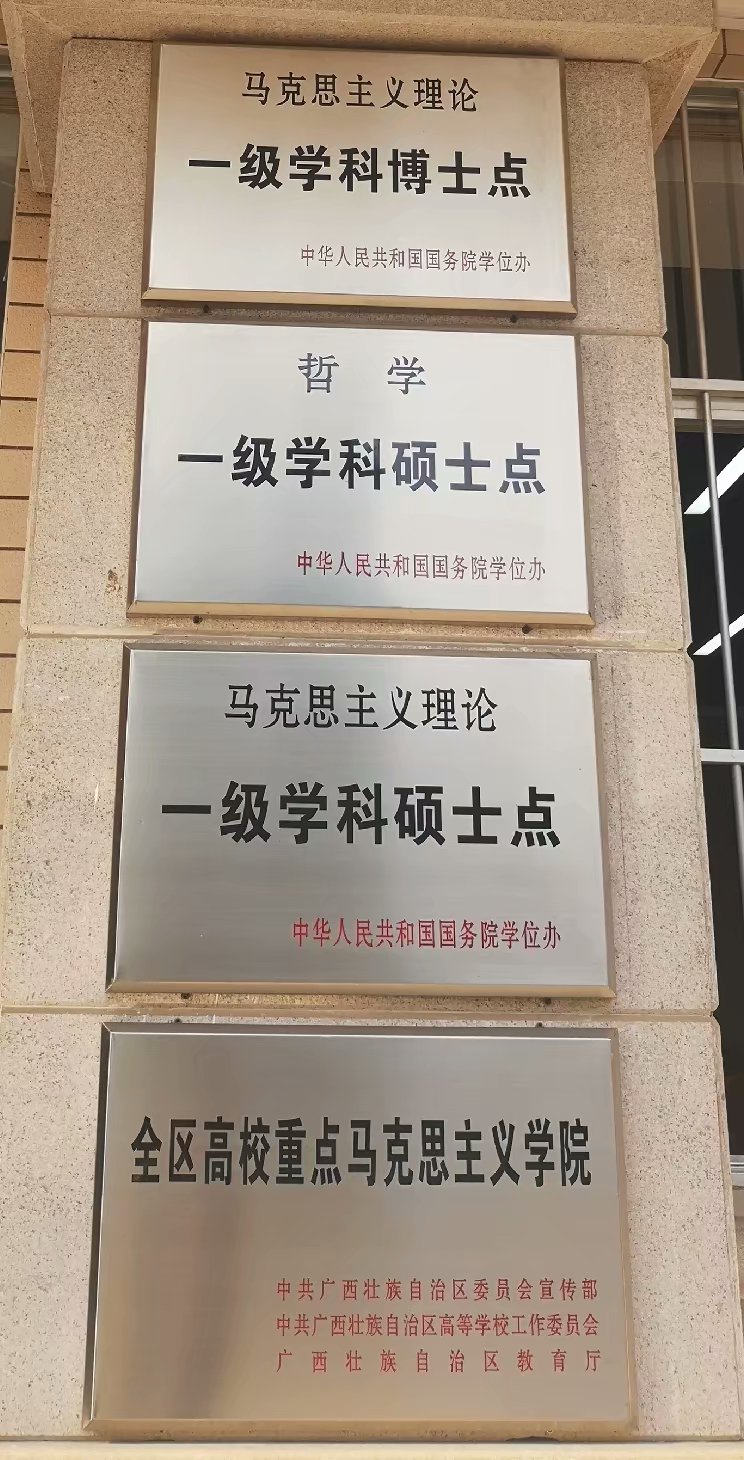 太阳成集团tyc122cc具有马克思主义研究的光辉历史和优良传统。首任校长马君武先生于1903年,最早将《共产党宣言》《资本论》等5部马克思、恩格斯著作以书目清单的形式,在中文期刊《译书汇编》上对马克思主义经典著作进行译介。在三十年代中后期,中共创始之一李达先生、《共产党宣言》的第一个中文全译本者陈望道先生都曾在太阳成集团tyc122cc任教。学院现有马克思主义理论和哲学两个一级学科,均为广西重点学科,其中马克思主义理论学科2017年获博士学位授权。目前学院有“思想政治教育、哲学”两个本科专业。