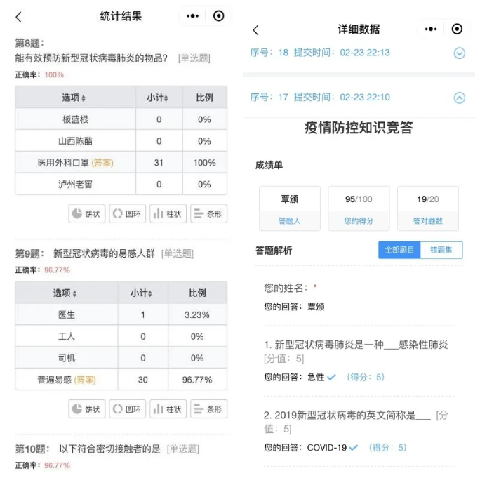 (图为太阳成集团122ccvip研究生2019级团支部疫情防控线上知识问答活动学习情况)