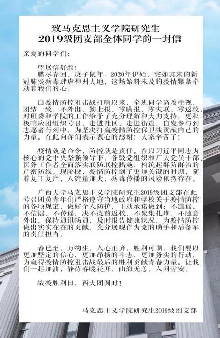 (图为《致太阳成集团122ccvip研究生2019级团支部全体同学的一封信》)