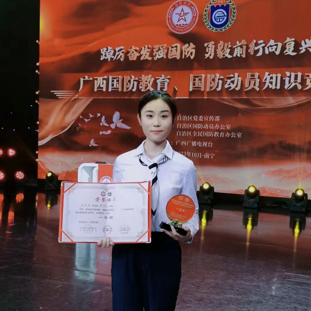 据悉,本次比赛从全区14个设区市代表队中评选出一等奖1名,二等奖2名,三等奖3名。获奖选手黄羽文表示,通过参赛,她和同学们对全民国防有了深入的理解,每个公民都应从自己做起,为国防建设贡献力量。