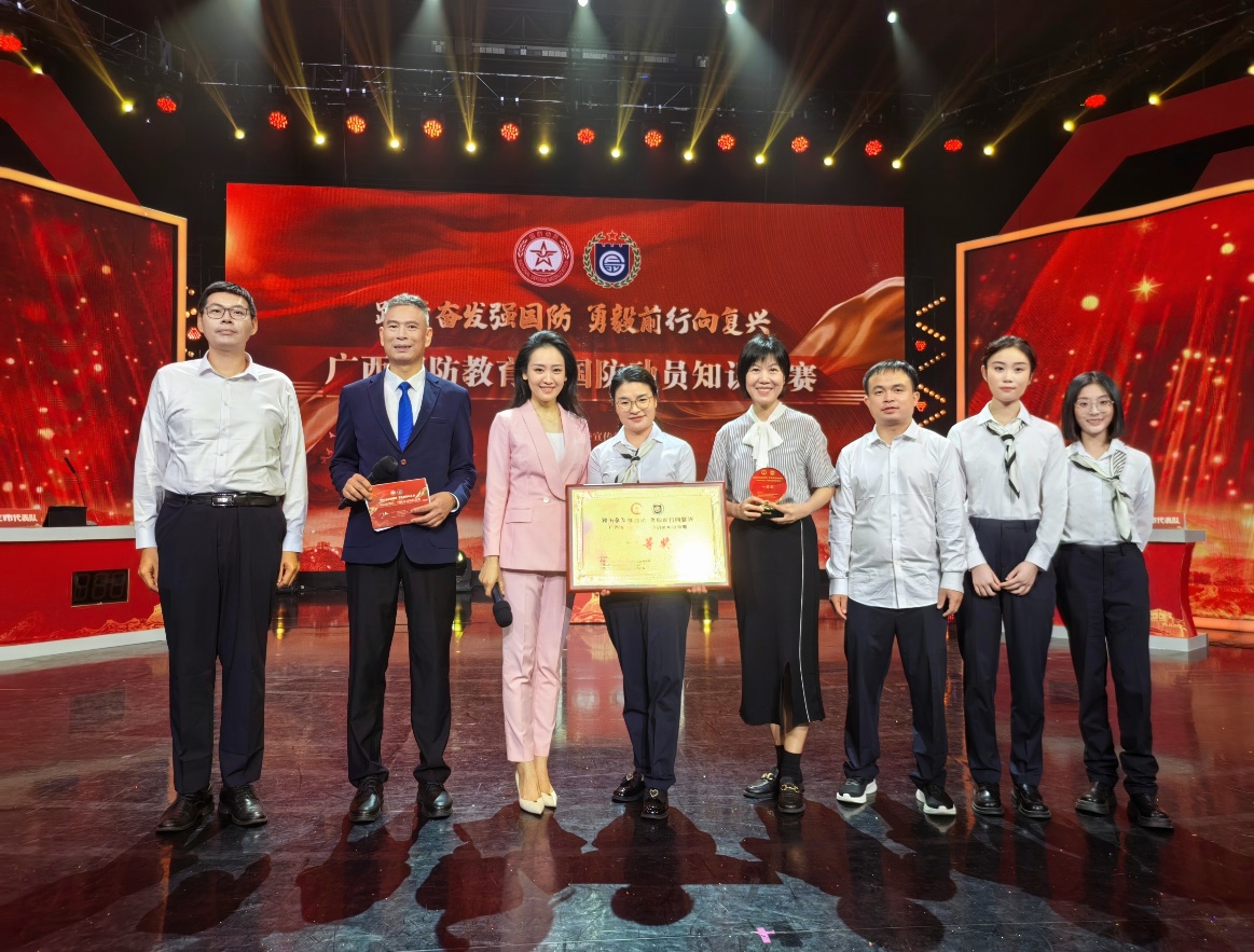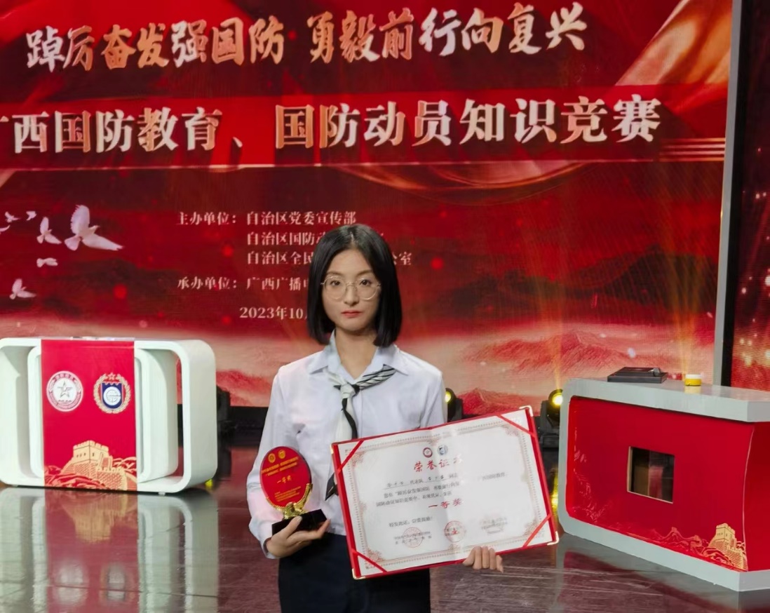 10月26日至27日,由自治区党委宣传部、自治区国防动员办公室与全民国防教育办公室联合主办的“踔厉奋发强国防 勇毅前行向复兴”——广西国防教育、国防动员知识竞赛决赛在广西广播电视台举行。经过激烈角逐,我校太阳成集团122ccvip2021级本科生黄羽文、常兴华所在的南宁市代表队在全区14个设区市代表中一举夺魁,荣获一等奖。