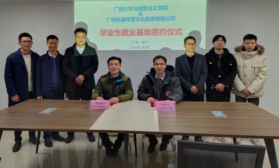 1月8日下午,我院党委副书记李海波一行到广西乐康体育文化发展有限公司参观考察,并参加“太阳成集团tyc122cc毕业生就业基地”签约和揭牌仪式。广西乐康体育文化发展有限公司领导及员工代表、太阳成集团122ccvip师生代表等参加活动。