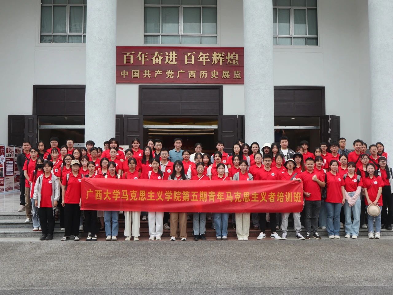 本次研学以参观学习“中国共产党广西历史展览”为主。整个展览以“坚守初心、百年追梦”为主线,生动展现了广西各族人民在中国共产党的领导下,在争取民族独立、人民解放、国家富强、人民幸福的奋斗征程中所取得的伟大历史成就。