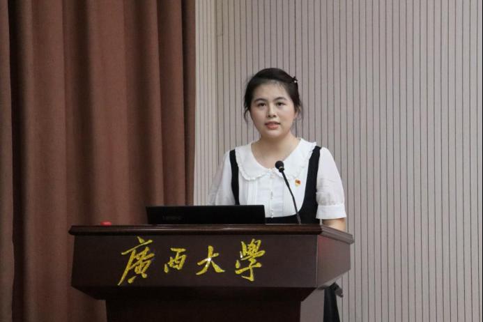 党员政治生日代表龙紫璐同志发表了政治生日感言。她讲述了自身以实际行动向党组织靠拢的心路历程,并表示党员身份不仅是一种荣誉,更是一种责任、一种使命。龙紫璐同志许下政治生日愿望:愿党的光辉永照、愿西大马院越来越好,也希望自己初心如磐,砥砺前行。