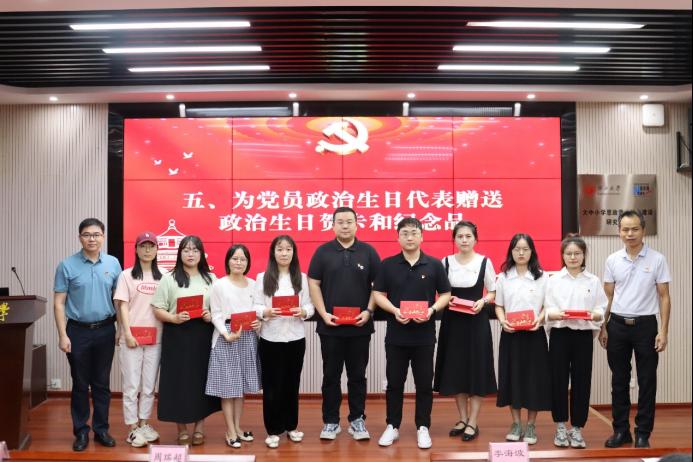 学院党委书记周瑞超老师、党委副书记李海波老师为党员政治生日代表赠送政治生日贺卡和纪念品,让党员同志们感受到来自党组织的温暖与关怀。