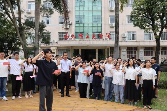 为深入开展学习贯彻习近平新时代中国特色社会主义思想主题教育,进一步强化我院学生党员的荣誉感、使命感、责任感,不忘入党初心、牢记党员使命,6月19日,我院在101报告厅举行2023年上半年入党宣誓大会暨党员政治生日仪式。学院党委书记周瑞超老师、党委副书记李海波老师、团委书记虞文茜老师出席活动;2023年上半年新发展的学生预备党员及政治生日在上半年的学生党员代表参加活动。活动由学生党建工作委员会余汶罡主持。